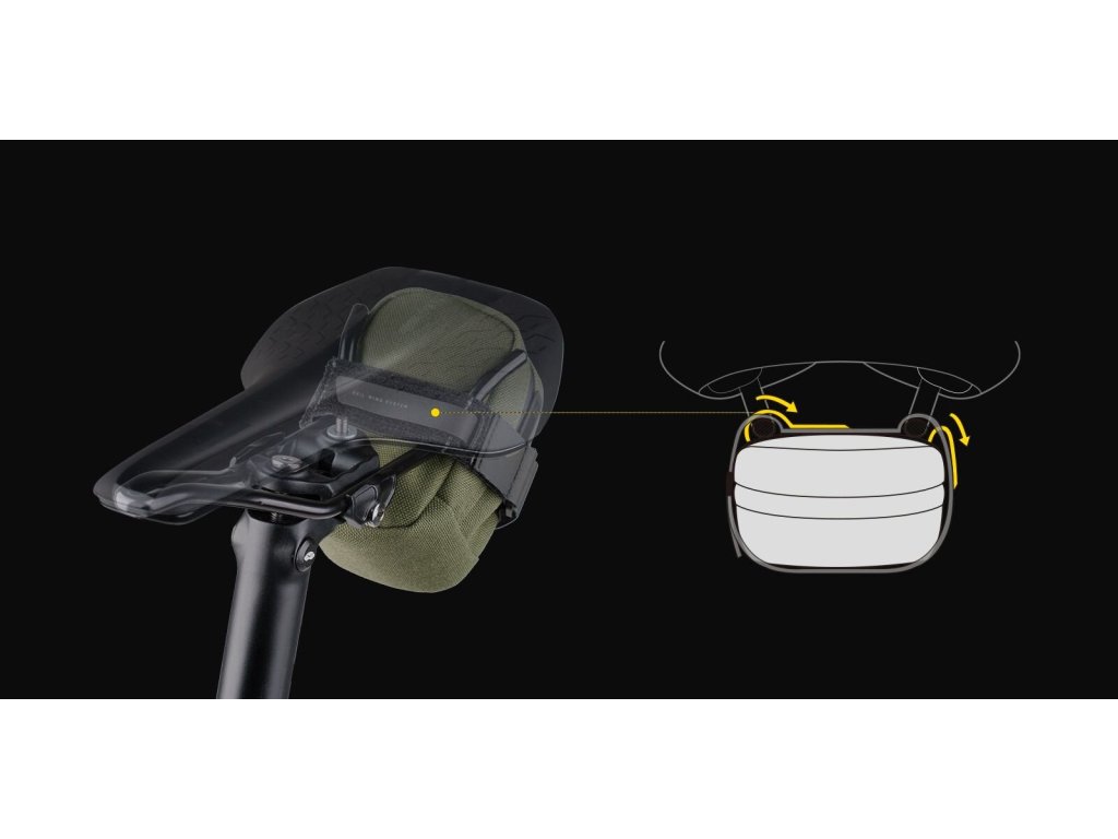 Kompaktní podsedlová brašna s popruhem na suchý zip pro přepravu duše, montpák, případně dalších drobností pro bezpečnou a jistou jízdu. Vestavěná protiskluzová tkanina zajišťuje bezpečnost při upevnění. K dispozici jsou tři velikosti a dvě barvy.